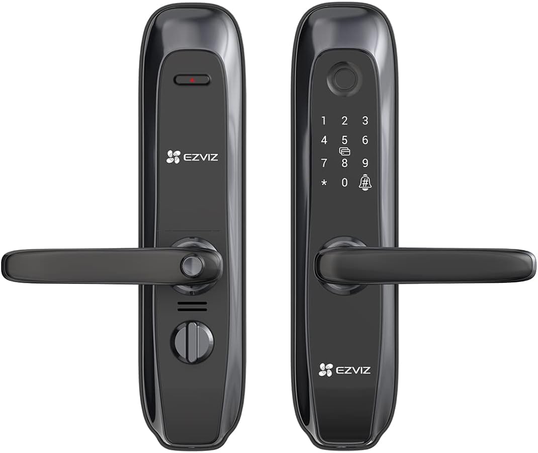 قفل Ezviz CS-L2S-11FCP الذكي باللون الأسود، يدعم فتح الأبواب بالبصمة ويوفر أماناً ومراقبة ذكية للمنازل والمكاتب.