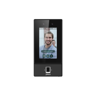 جهاز متقدم للتحكم بالدخول مزوّد بشاشة لمس 4.3 إنش وكاميرا مزدوجة، ويدعم التعرف على الوجه والبصمة والبطاقة وكلمة المرور. يتميز بقدرة تخزين 6000 مستخدم، مع ميزات أمان مثل كشف الكمامة والخوذة، ودعم كود الزائر، والاتصال عبر TCP/IP، وبحماية IP65.